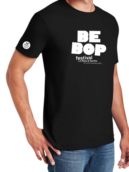 C'est LE t-shirt officiel de la 39e édition du Be Bop Festival du Mans. Festival majeur de la scène musicale française et découvreur de nombreux artistes, c'est un rendez-vous incontournable avec, cette année encore, une programmation riche et éclectique. Last train, Feu! Chatterton, Pete Doherty, Pamela... la liste est longue. Le t-shirt lui est unique. Il est unisexe, prérétréci (pour ne pas se déformer au premier lavage), avec une bande de propreté d'épaule à épaule, une piqûre double au col, au bord des manches et à la base. De couleur noire pour aller avec tout. Et pour couronner le tout, il est à un prix raisonnable et pressé au Mans.